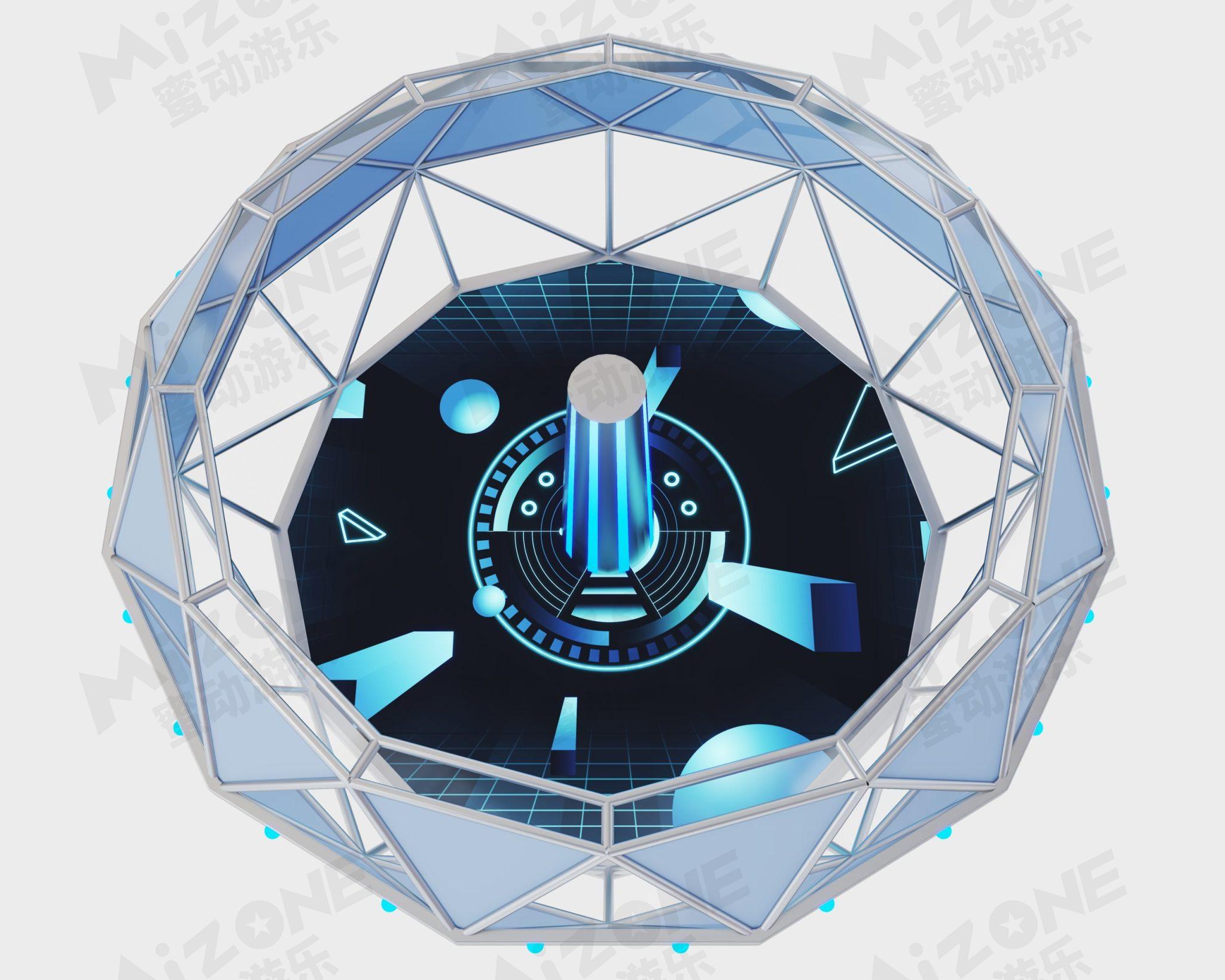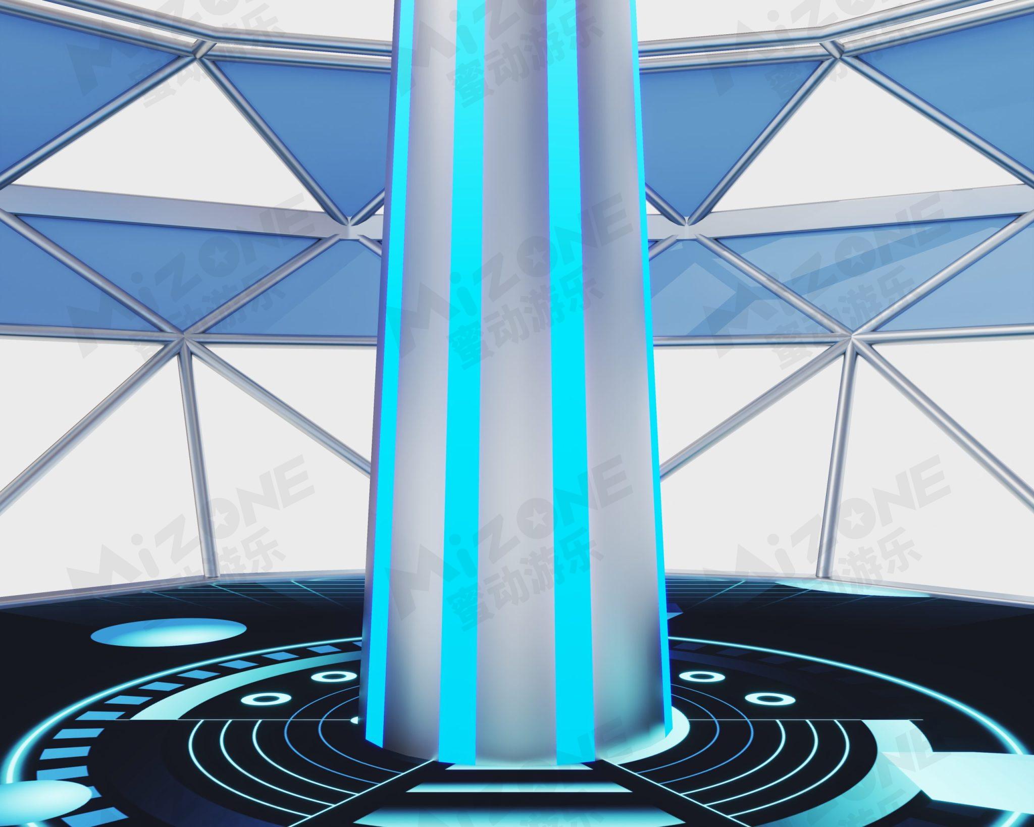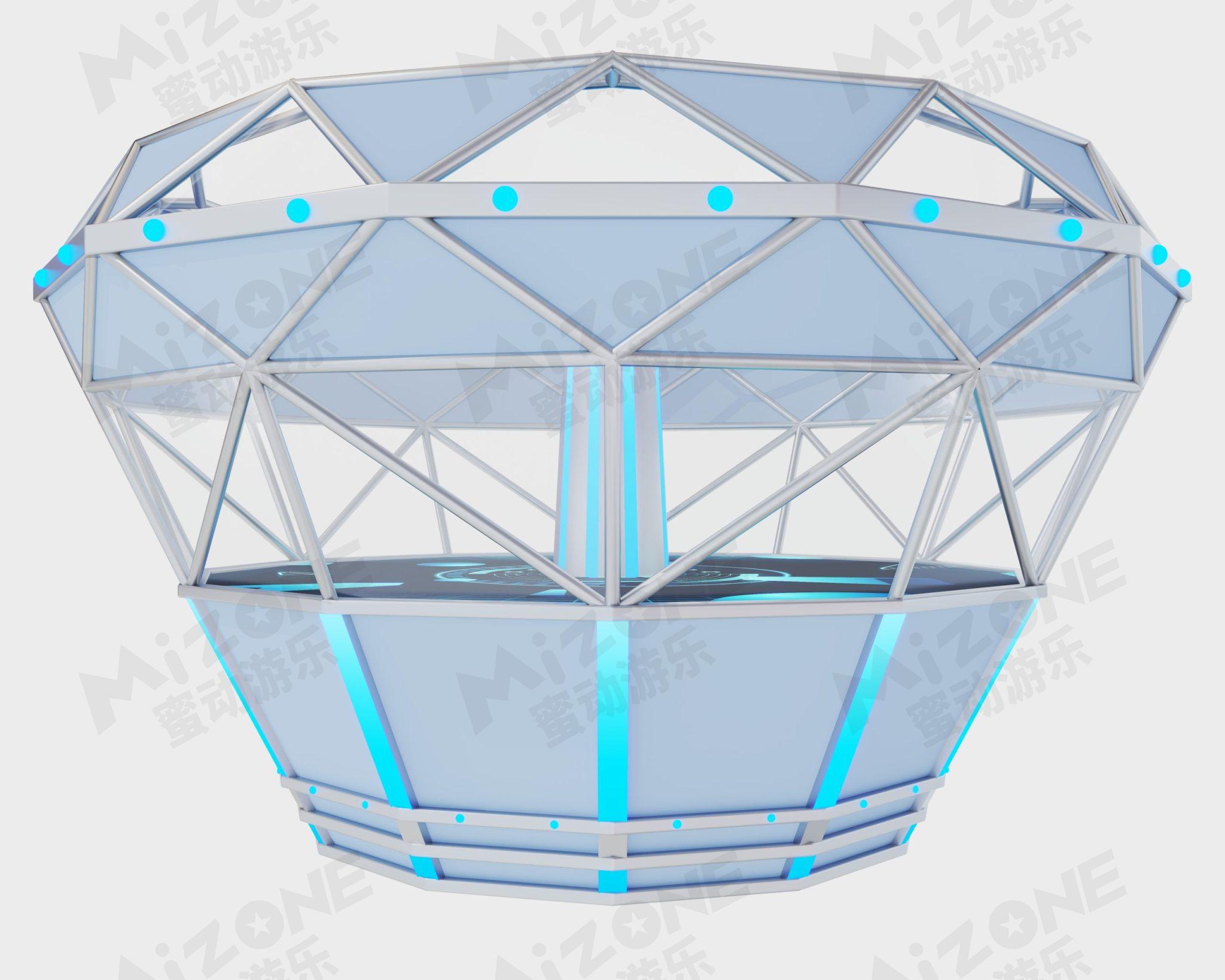 采用几何形状通过发光部件和操作显示单元的设计来增加科技感和现代感。钻石离心机的外观呈现为动态转动的状态,内部的人紧紧贴附在离心机的内壁上仿佛被强大的离心力紧紧吸附,营造出一种超级刺激和震撼的视觉效果。