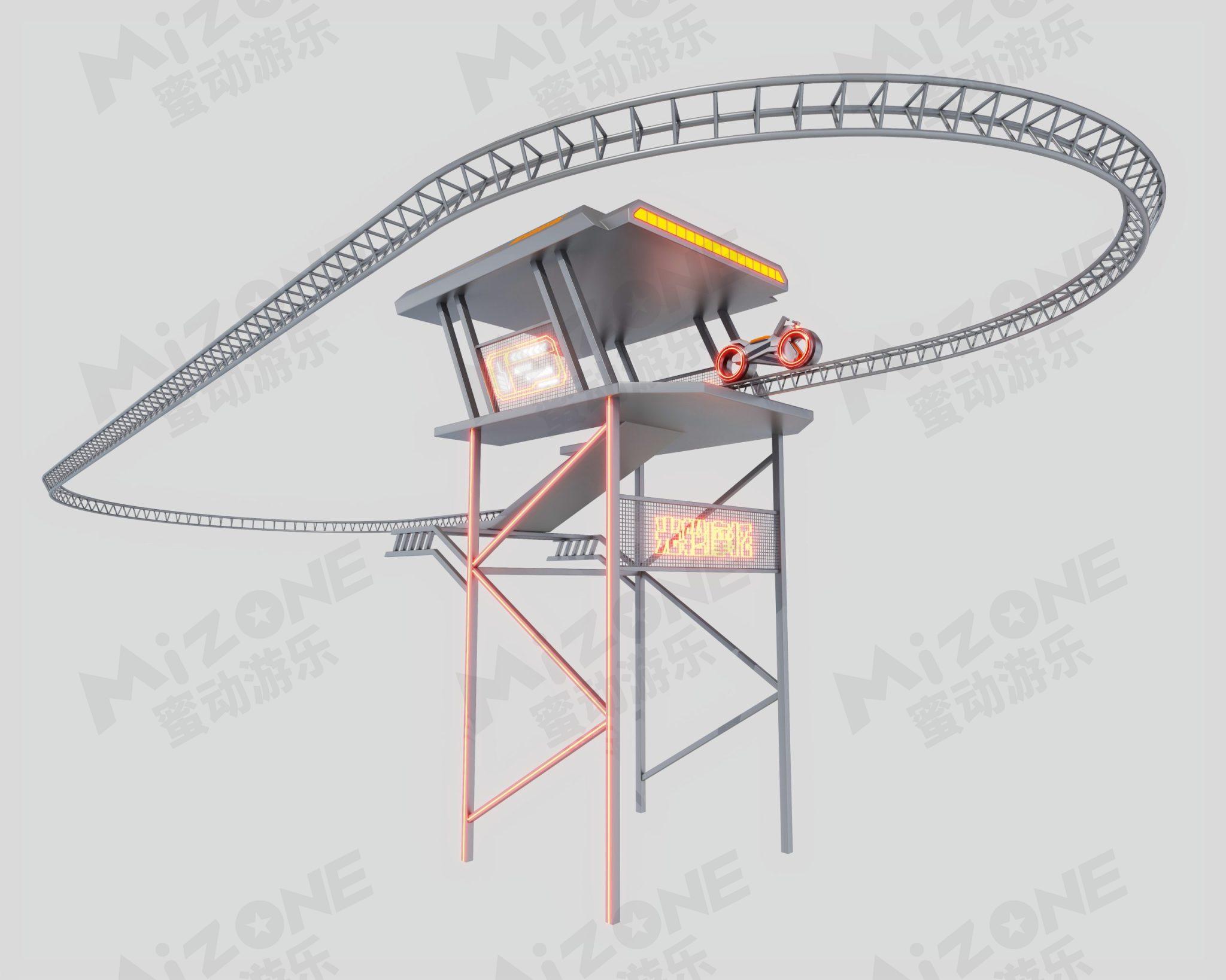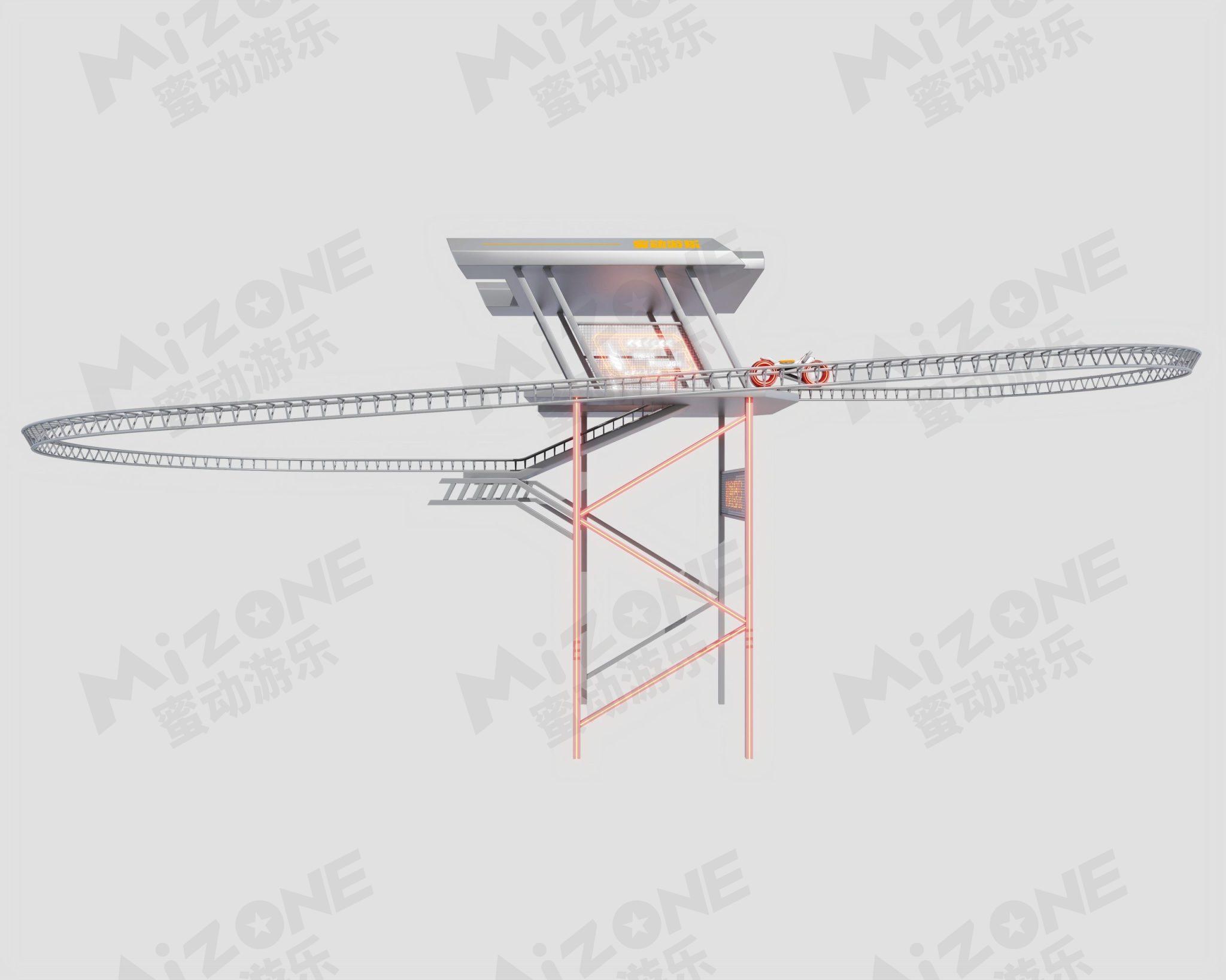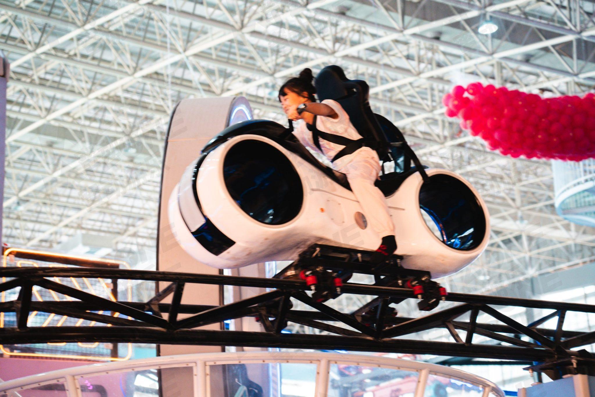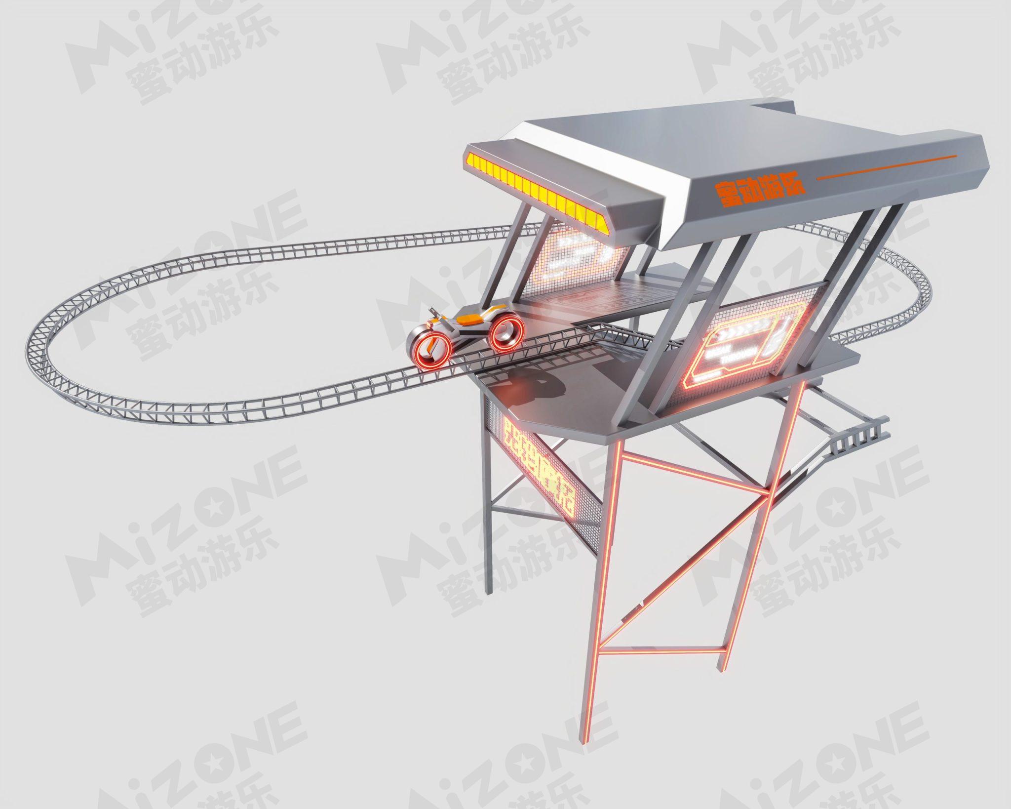 科技感的光轮摩托带您在架空轨道上驰骋,带您体验刺激又安全的过山车体验。当然骑行时会不会有一股纵马飞跃一往无前的英雄气势呢!