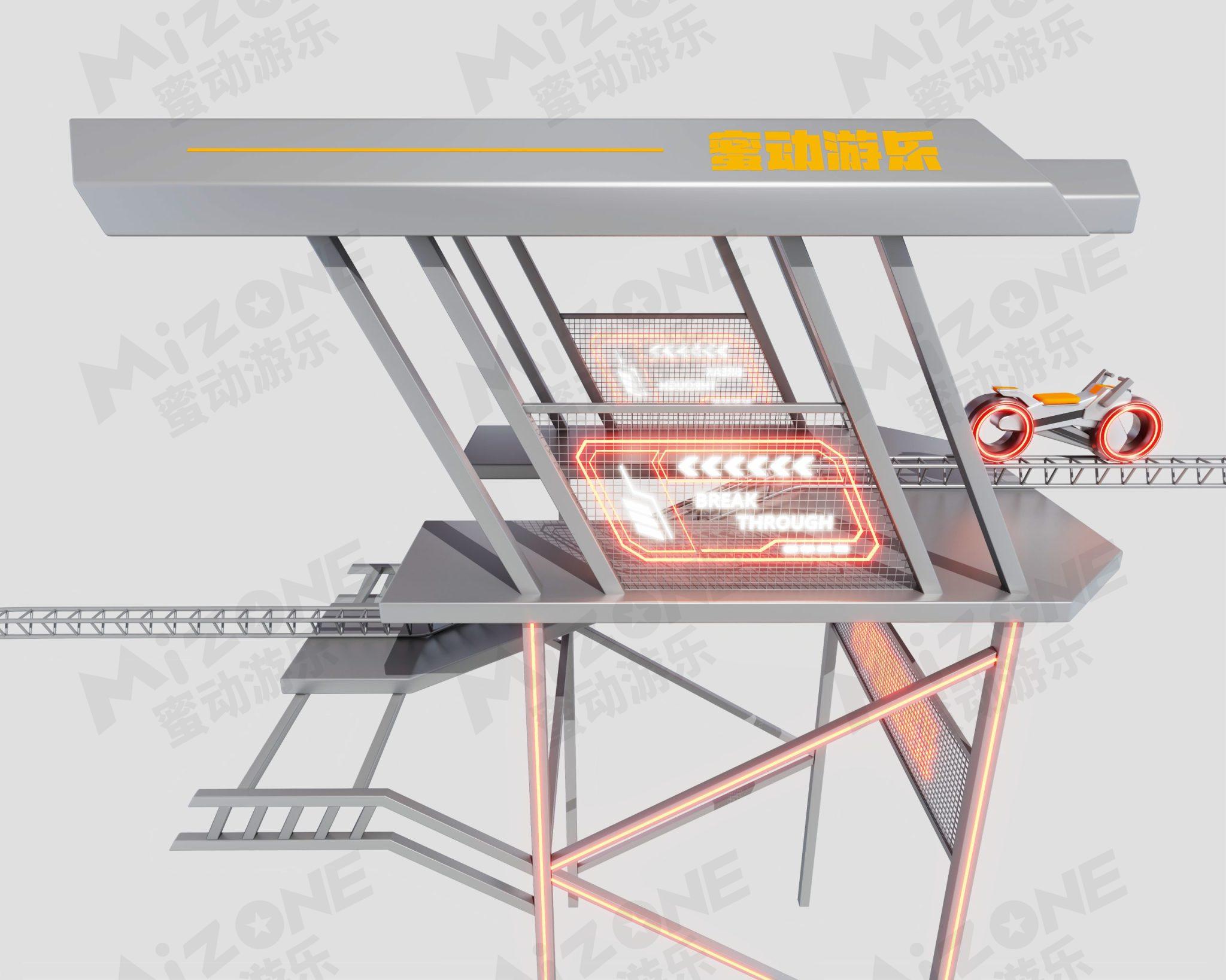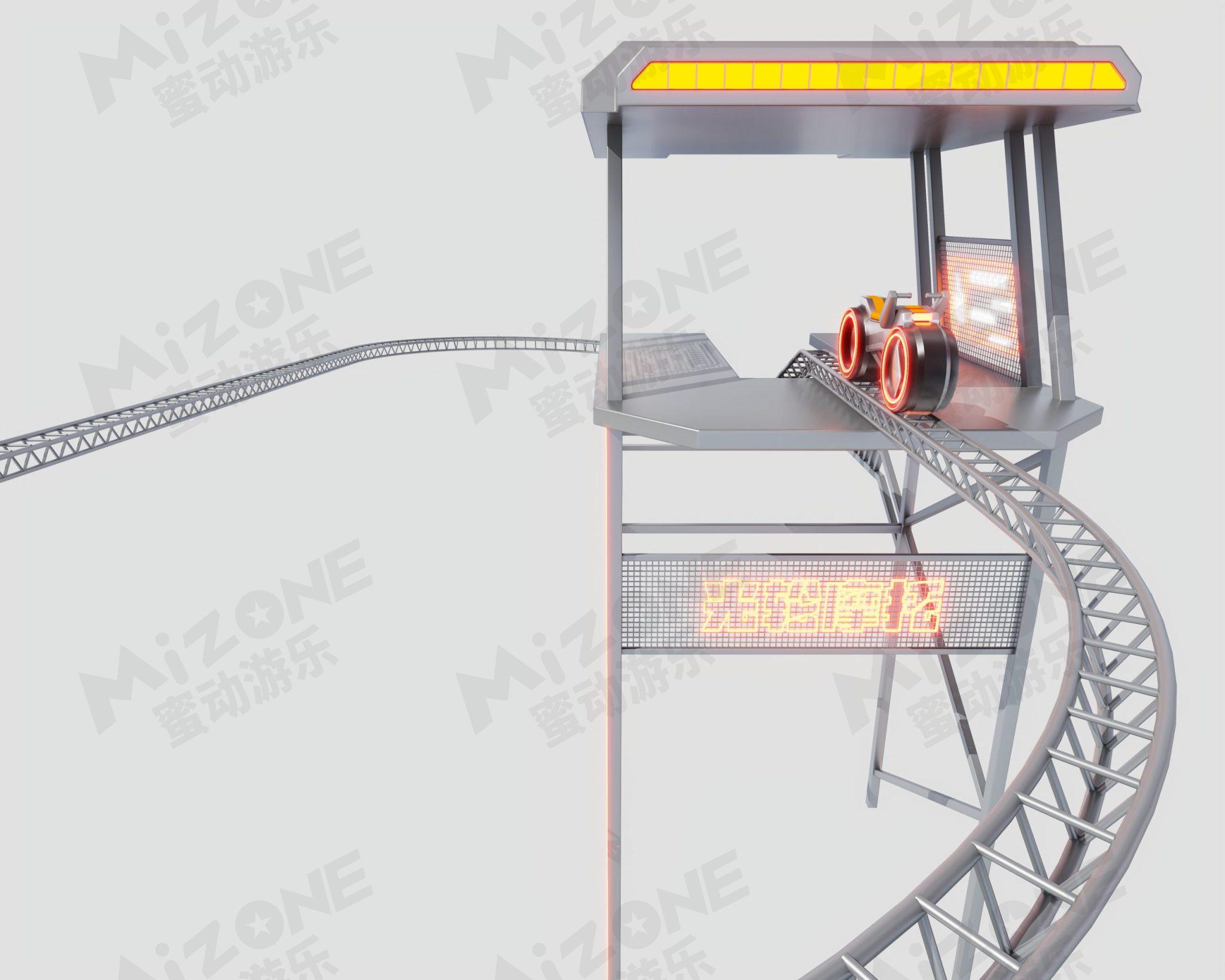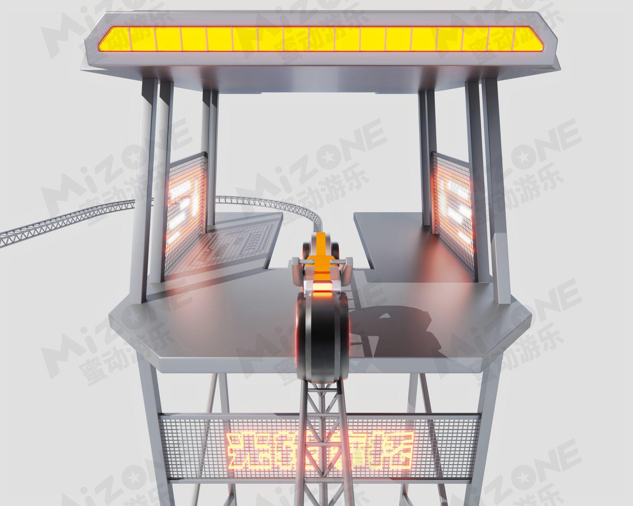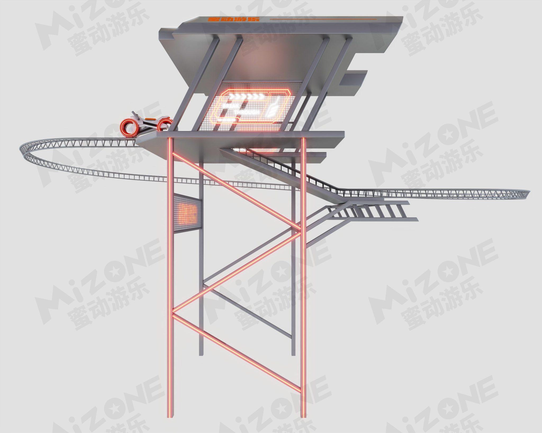 科技感的光轮摩托带您在架空轨道上驰骋,带您体验刺激又安全的过山车体验。当然骑行时会不会有一股纵马飞跃一往无前的英雄气势呢!