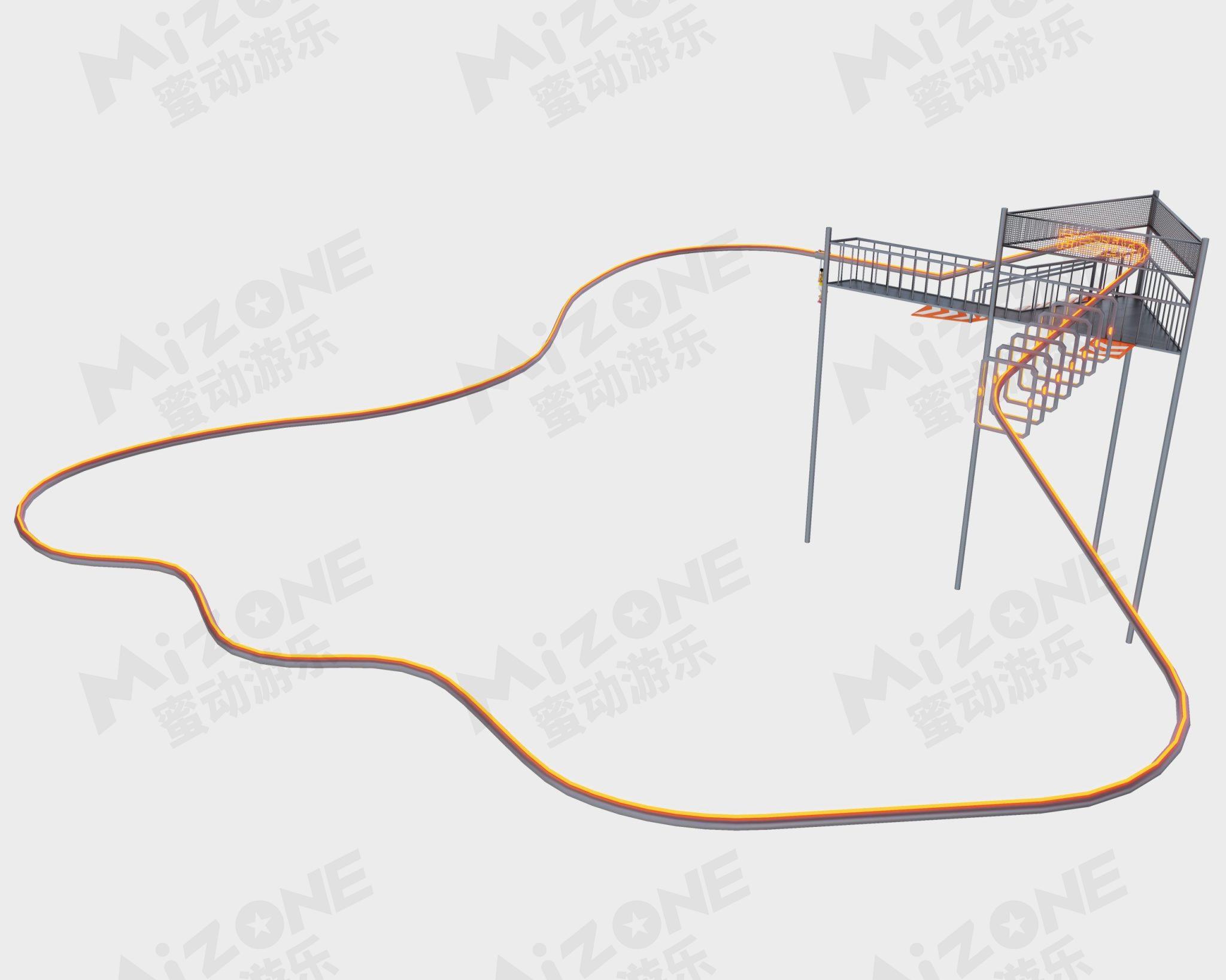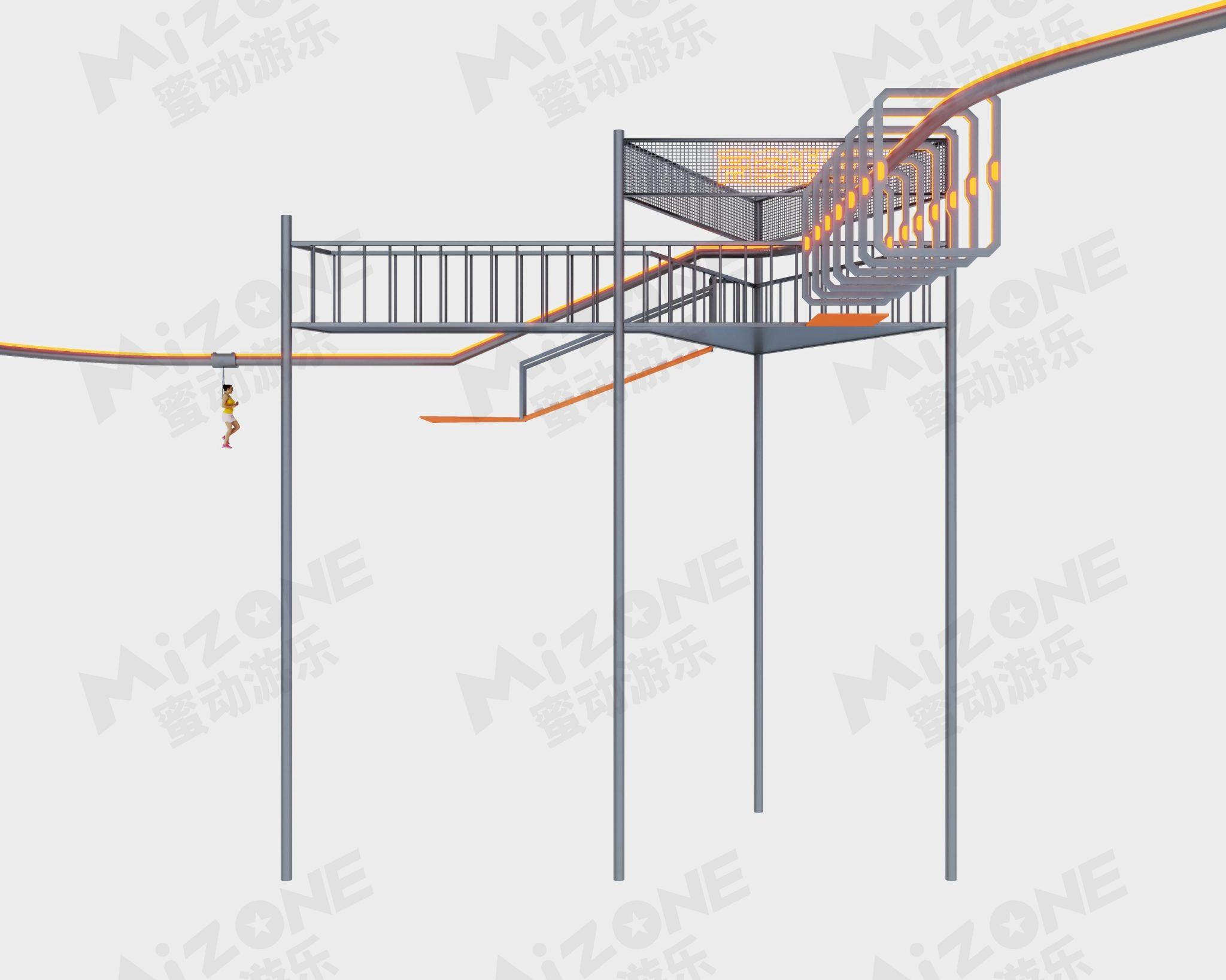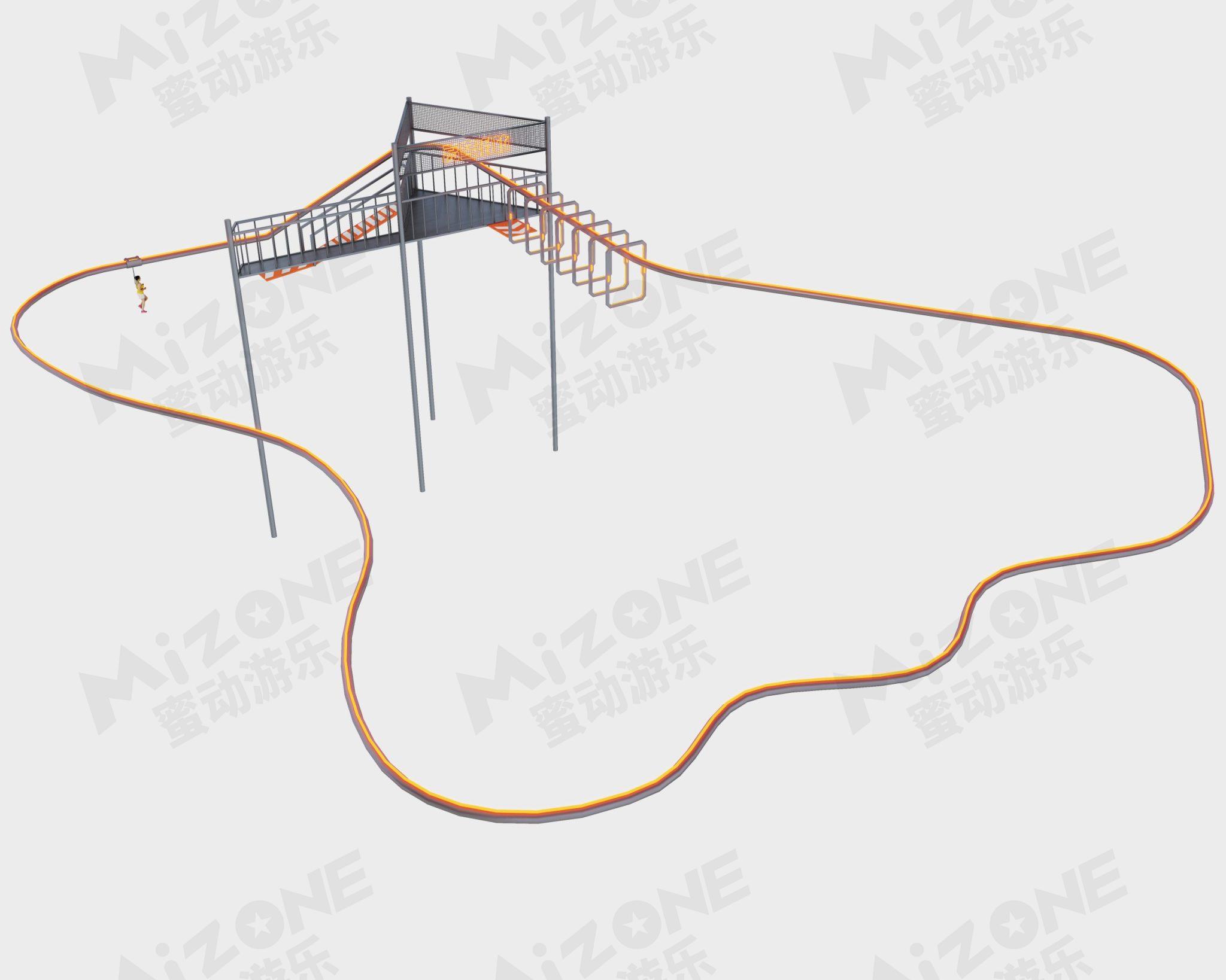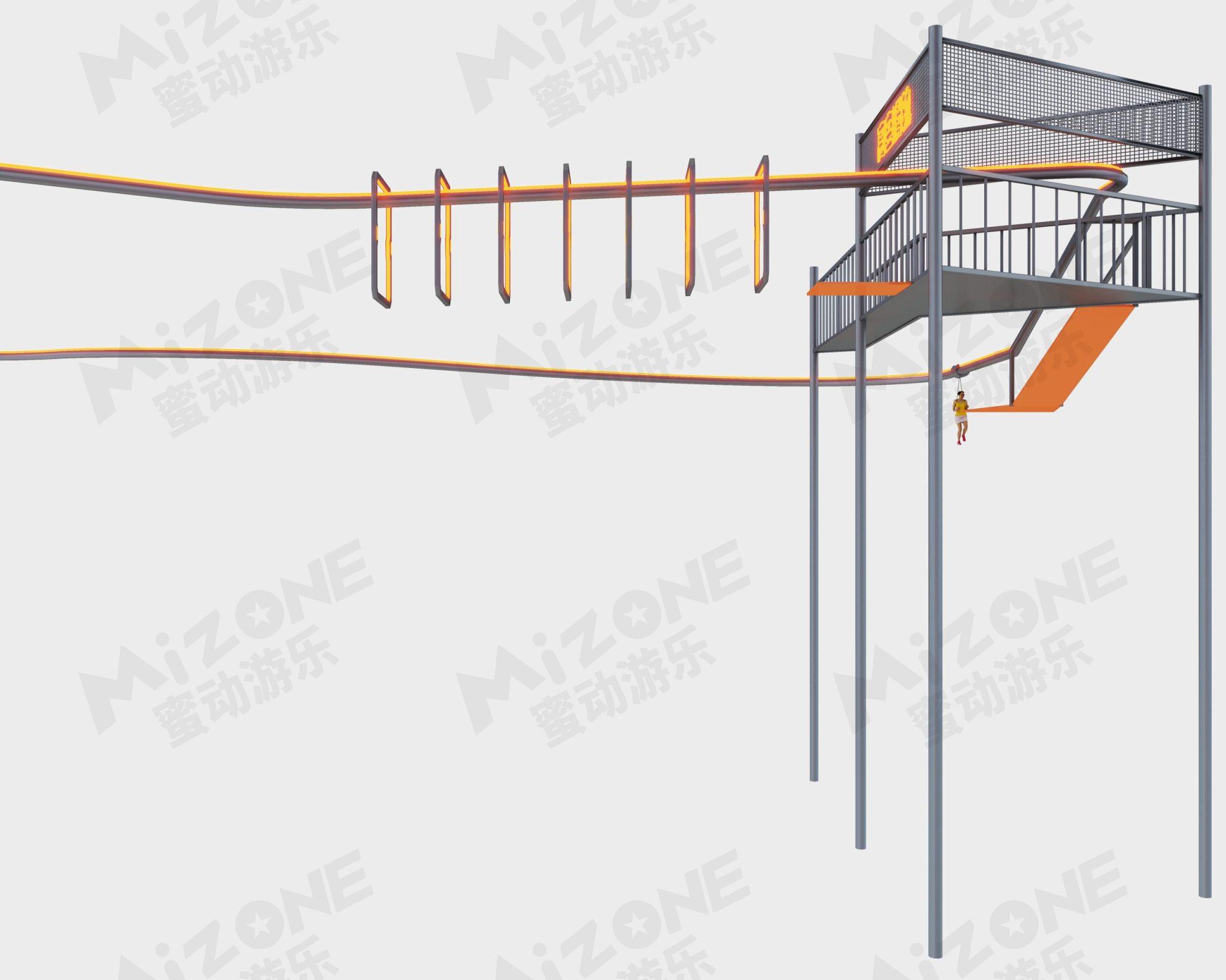 这是一款具有挑战性、刺激性和娱乐性的极限游乐项目产品。适用多种场地,如:商场游乐馆、城市运动馆、蹦床公园、丛林极限运动探险。项目线路根据场地进行定制化设计,尤其对于超长线路可以设置多种不同的体验节点,如S弯、大转弯、急转弯、上下坡冲击、时空隧道穿越等。