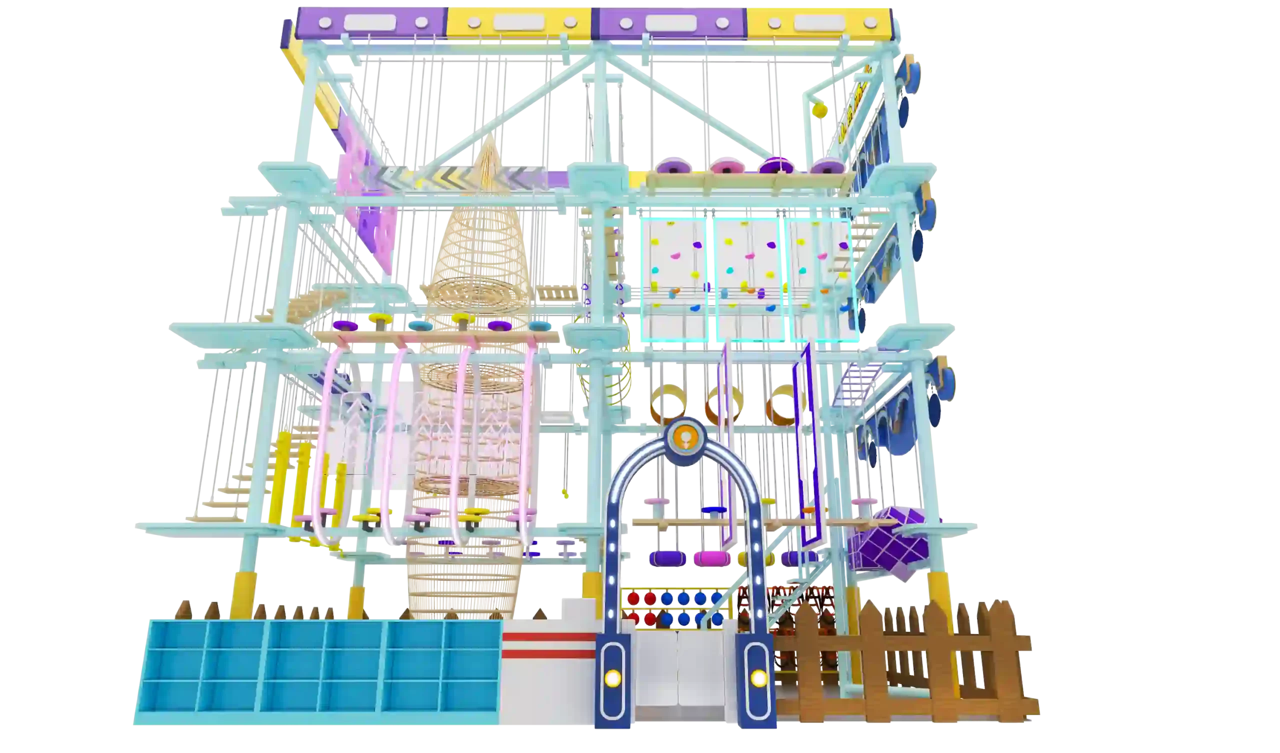 我们一听就来劲了!50平米虽然不大,但9米的层高简直是个宝藏空间啊!经过和客户的几轮头脑风暴和实地考察,我们决定要把这个小空间打造成一个立体的游乐王国——高空拓展塔。