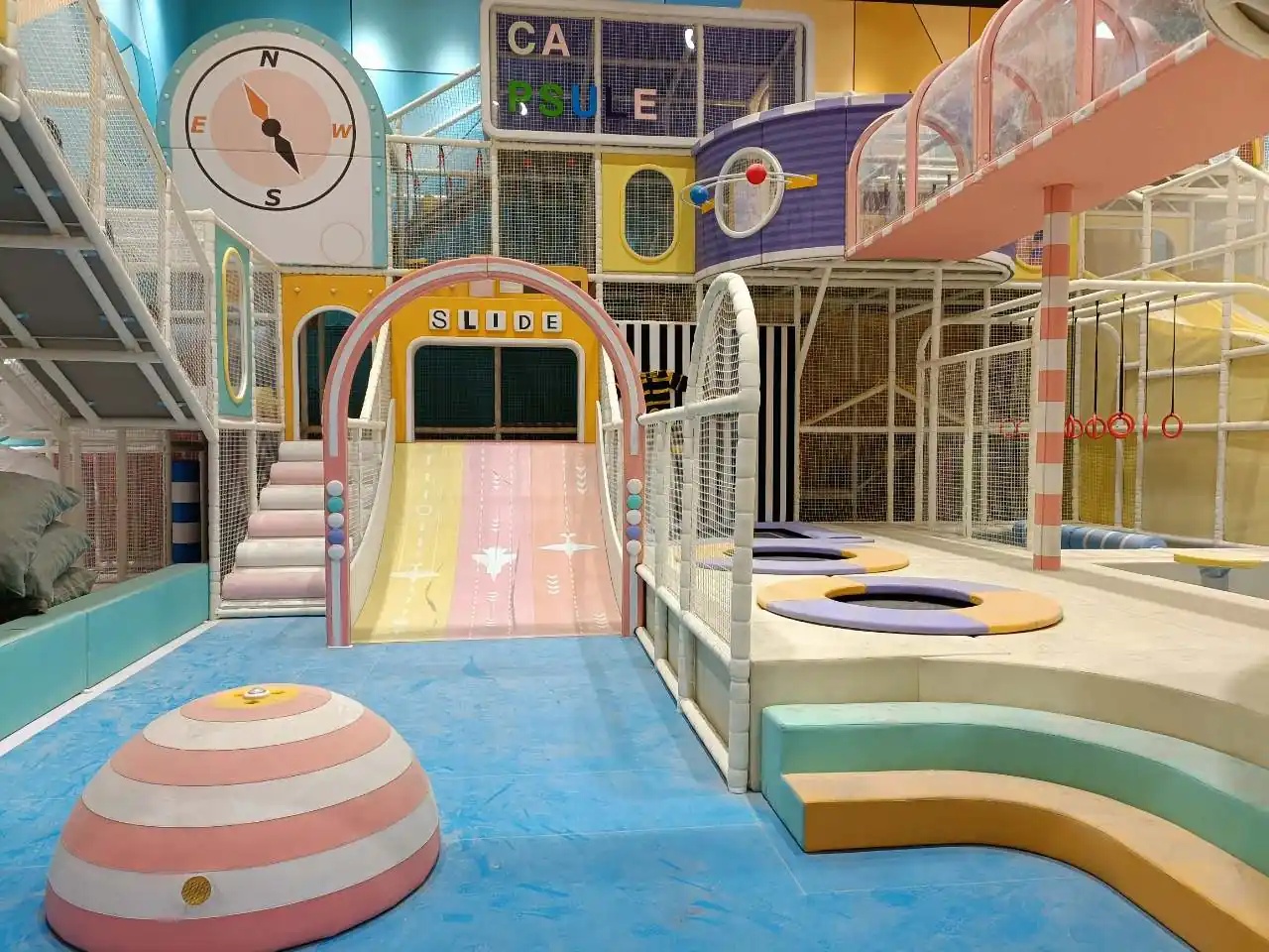 这些年我们做过不少案例:西安2500㎡的极限蹦床公园,包含攀岩、尖叫滑梯等10多个项目,开业后成了当地网红打卡地;湖北武汉950㎡的淘气堡,用马卡龙色系设计,半年客流破10万。南京投资者不用愁没经验,我们把数百个门店的运营模式总结好,从选址到营销都能给建议。