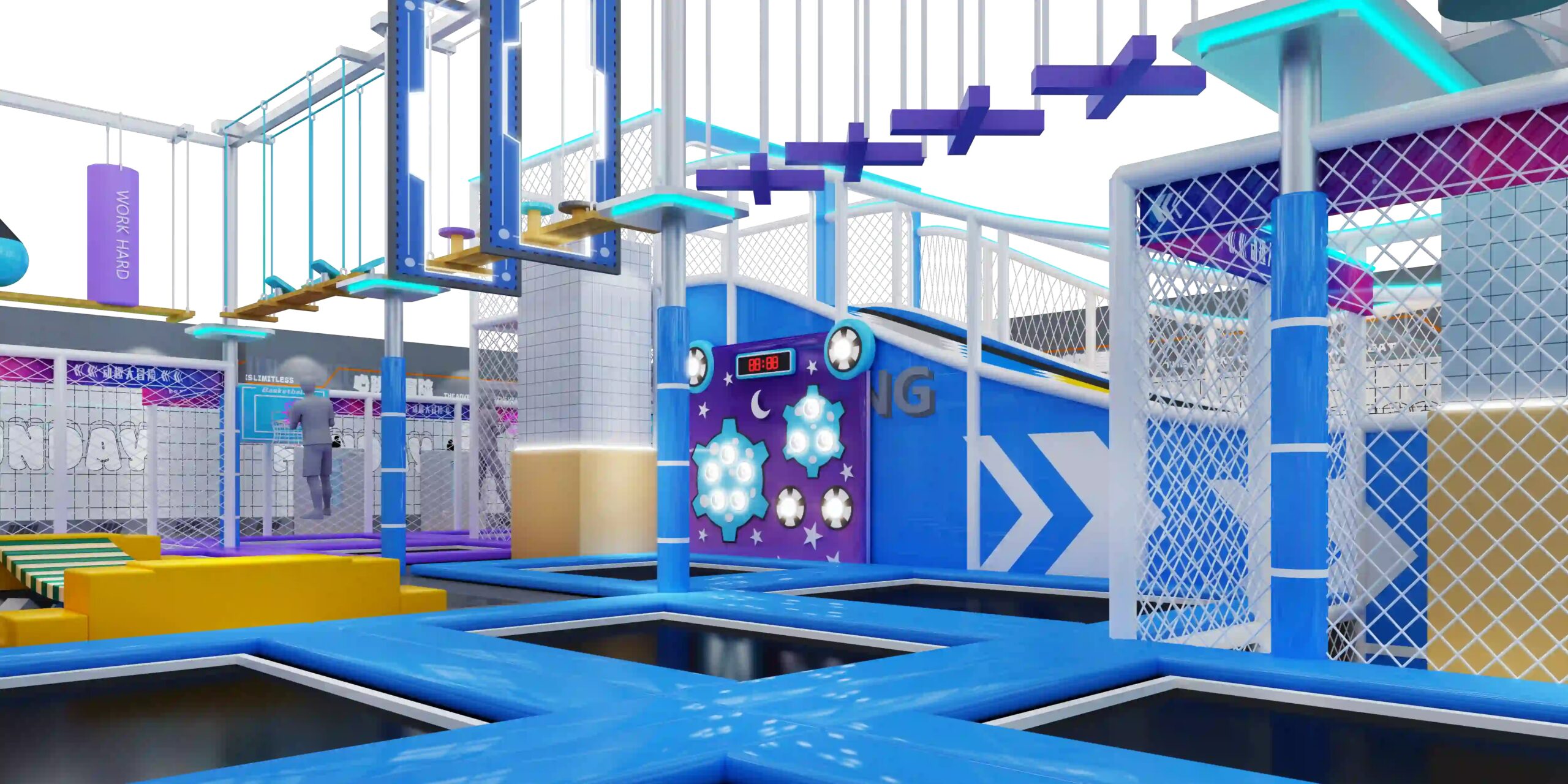 我们在西安做过好几个大项目,像2500平方、6.5米高的极限运动蹦床公园,里面滑轨、攀岩、奥林匹克蹦床、斯篮博蹦床都有,运营得很成功。淘气堡案例就更多了,河北廊坊天洋广场的宝乐多、四川泸州万达广场的宝贝王,还有广东肇庆634平米的多奇妙儿童乐园,都是我们的手笔,设计新颖,孩子们都爱去。