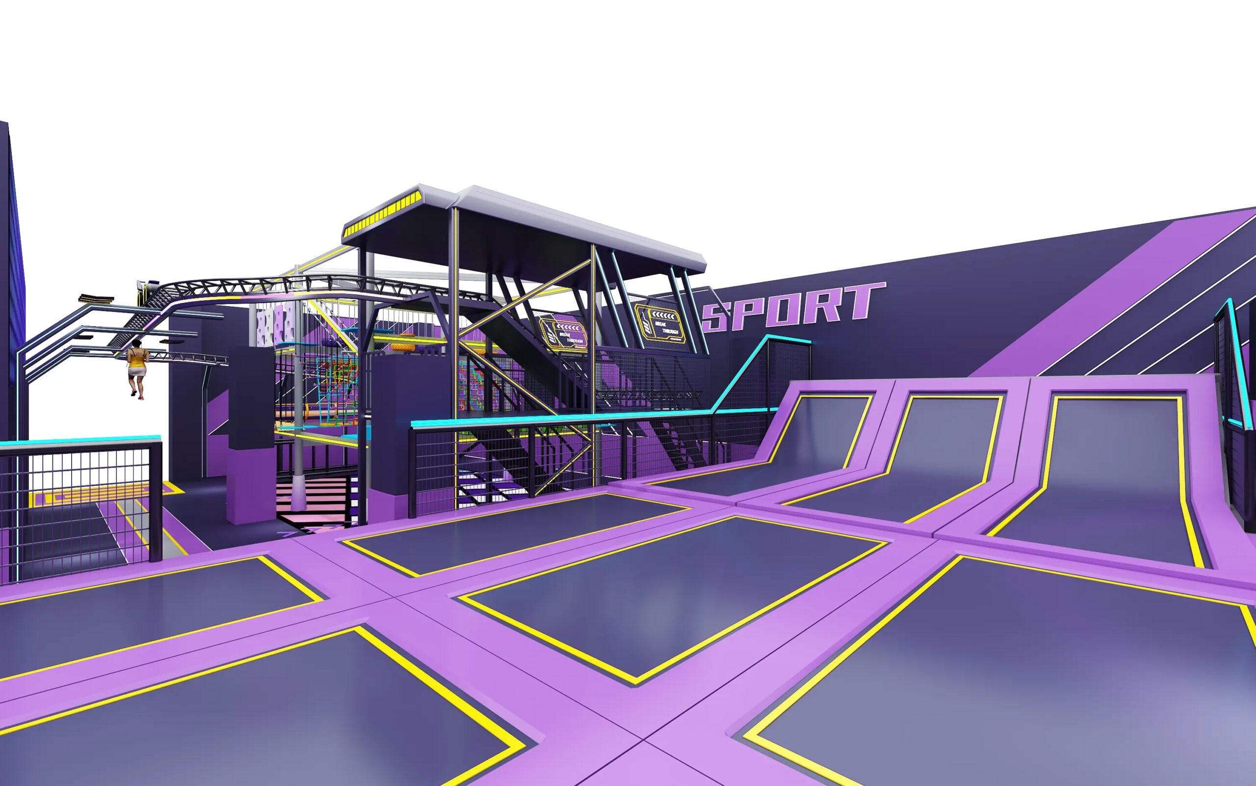 我们在佛山有近万平米的生产基地,60多位专业人才,从设计到生产、安装、售后,全程为你服务。不管你是想做超级蹦床、高空拓展,还是淘气堡,我们都能给你提供一揽子解决方案。像西安好几个2000多平方的大型蹦床公园,还有深圳松柏天虹700平米的淘气堡,都是我们做的,几百位加盟商跟着我们干,收益都还不错。