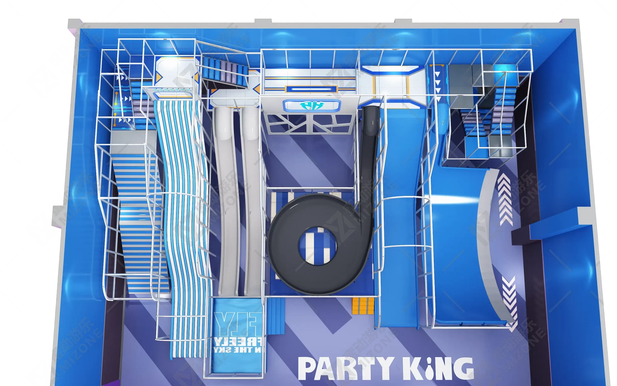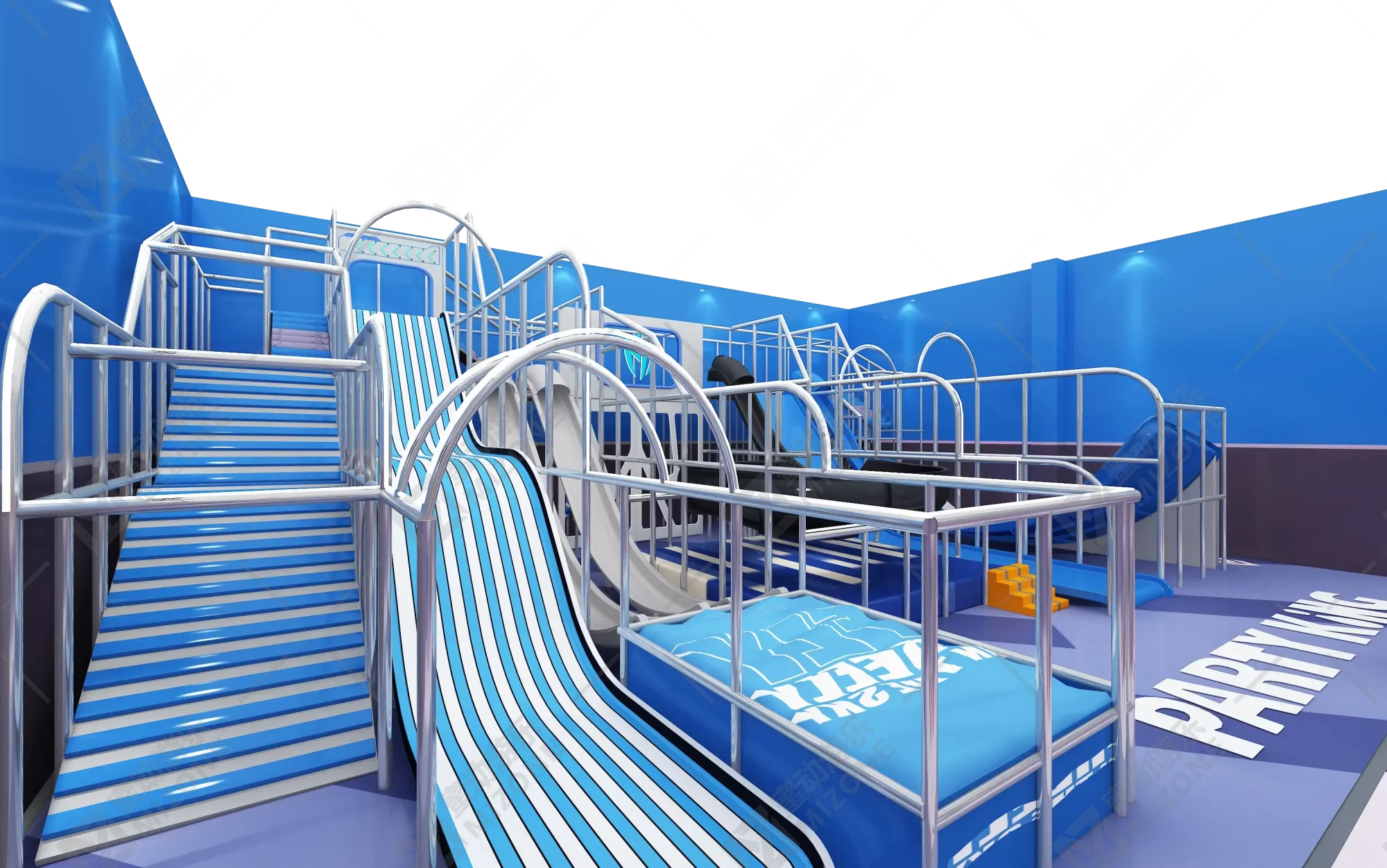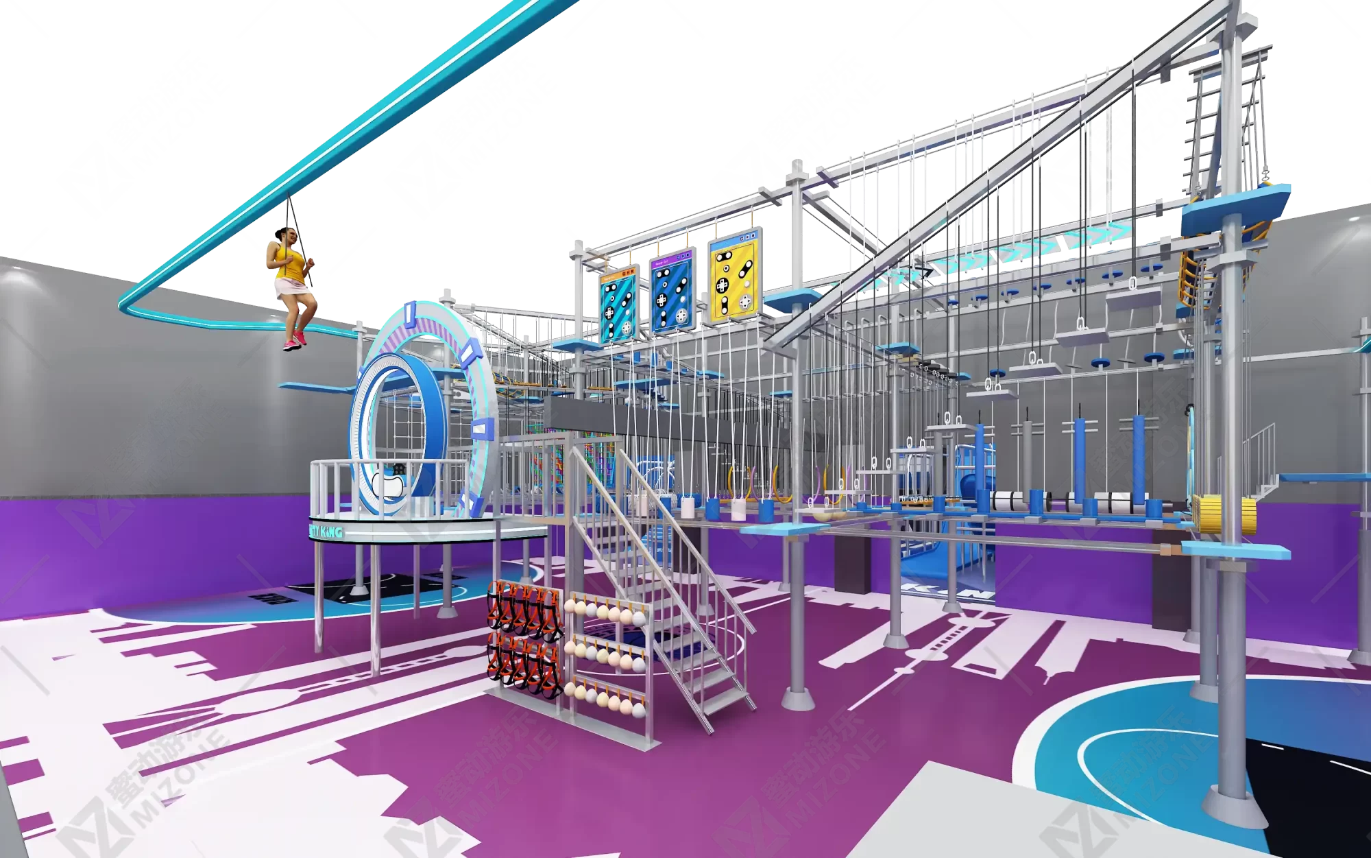 攀岩、梅花桩、蹦床区、拓展区、架空360自行车、滑梯矩阵