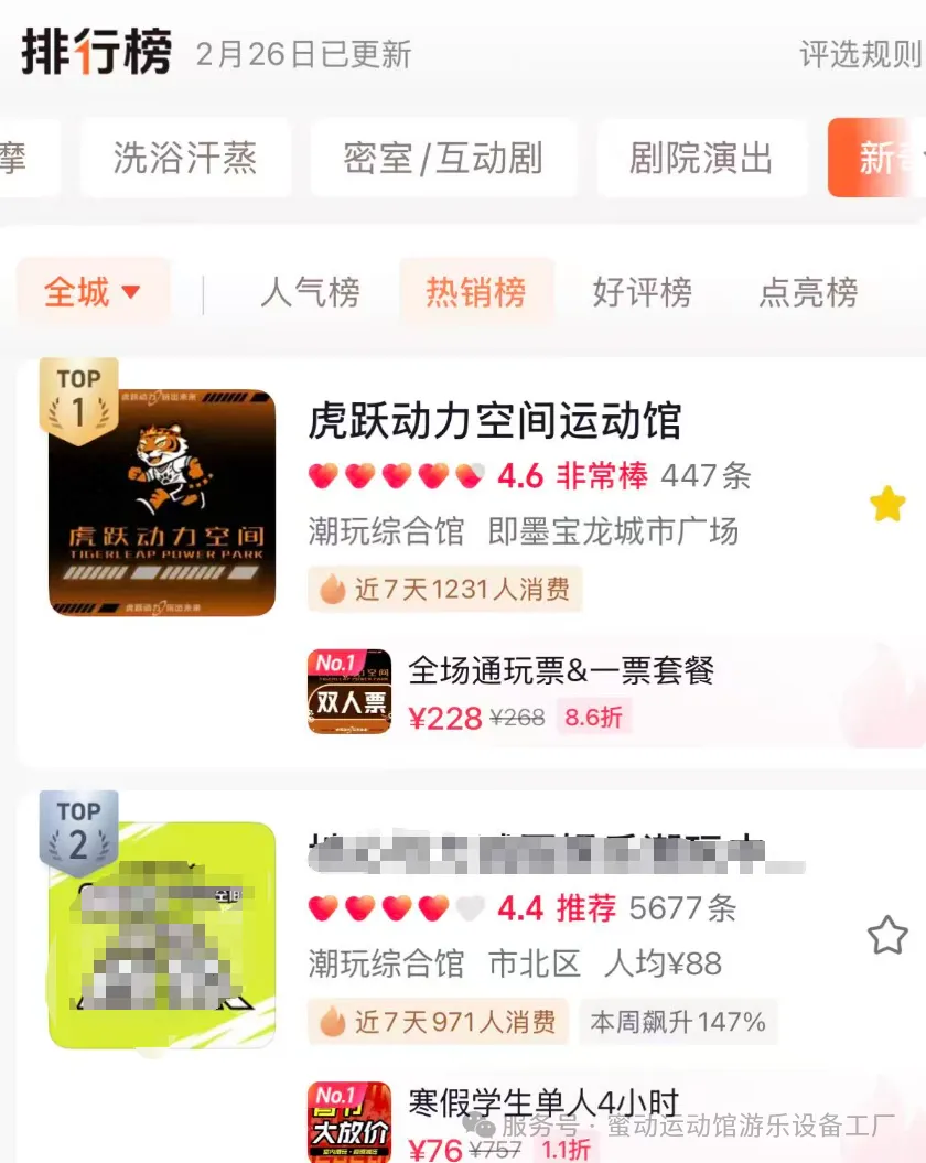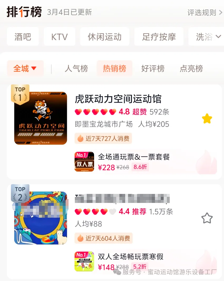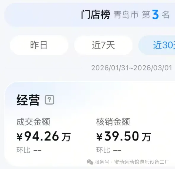 从营收数据来看,店铺在某音团购上,近一个月营收100万,位列青岛市娱乐板块第三名。