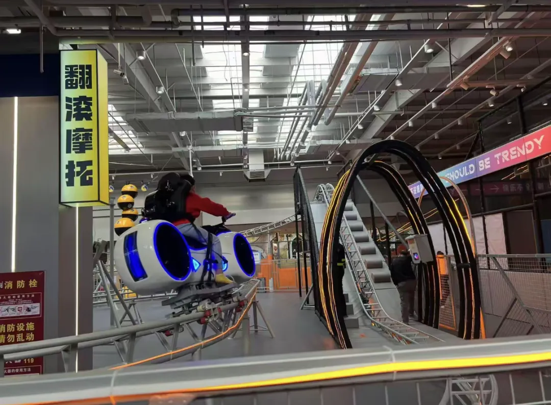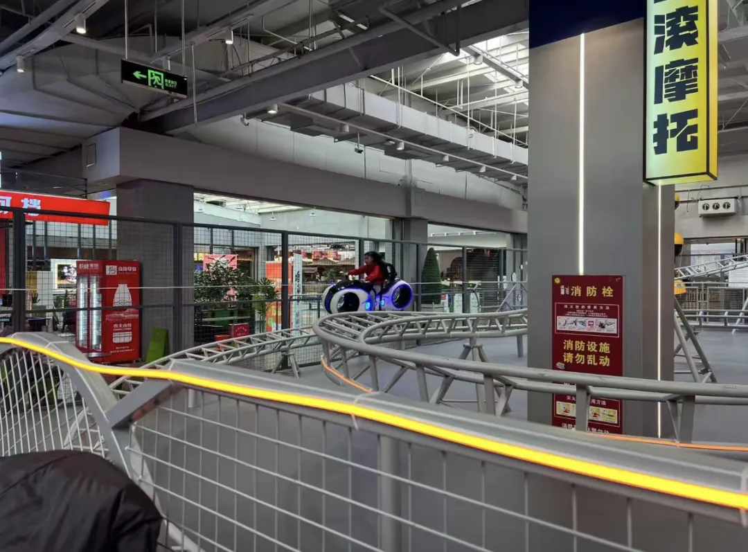 地面上,独家新品翻滚摩托稳稳占据 C 位,球形攀岩、专业蹦床、波浪魔鬼滑梯错落排布,从 3 岁的小朋友,到 20 多岁的年轻人,都能在这里找到属于自己的快乐。